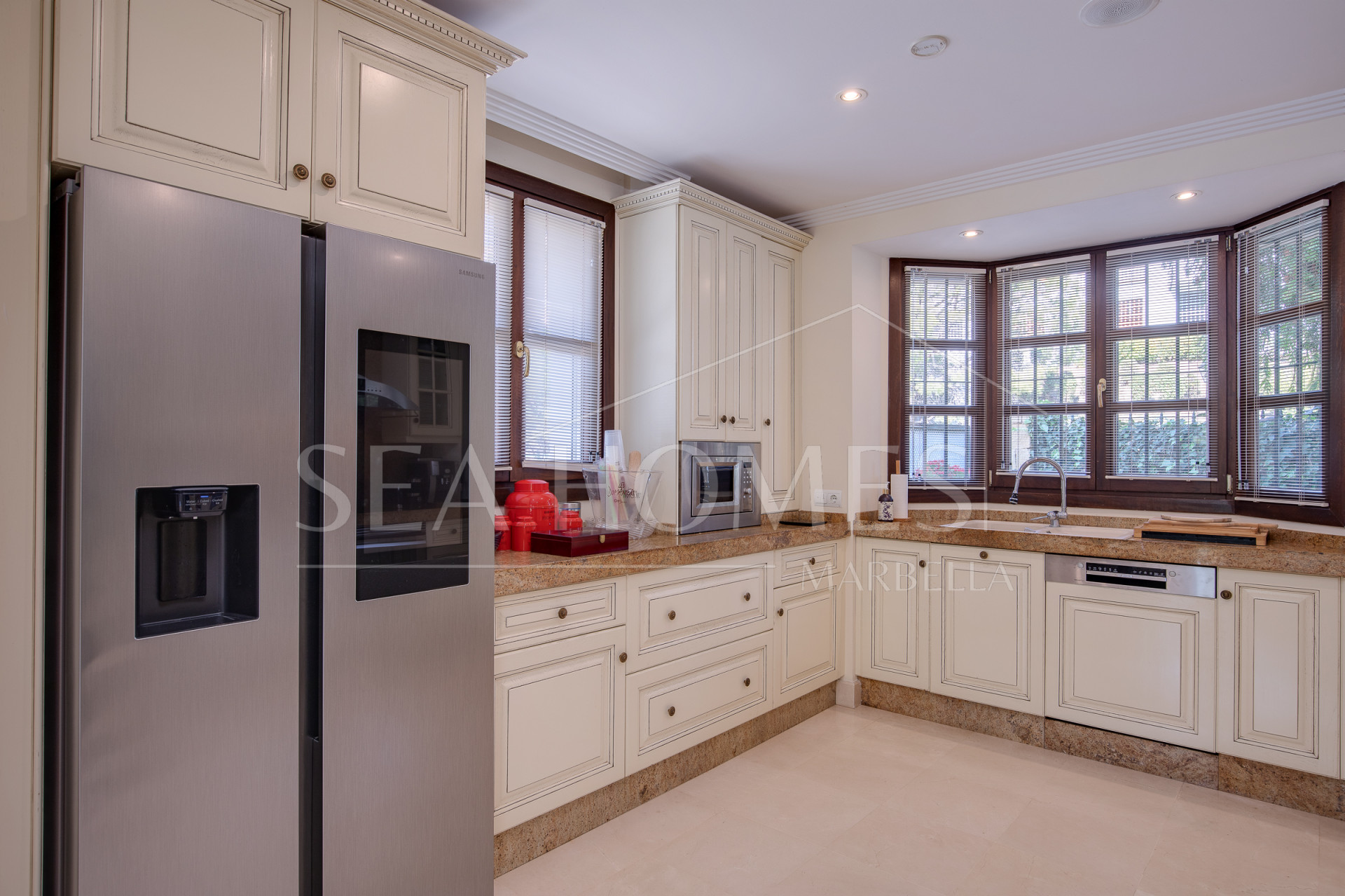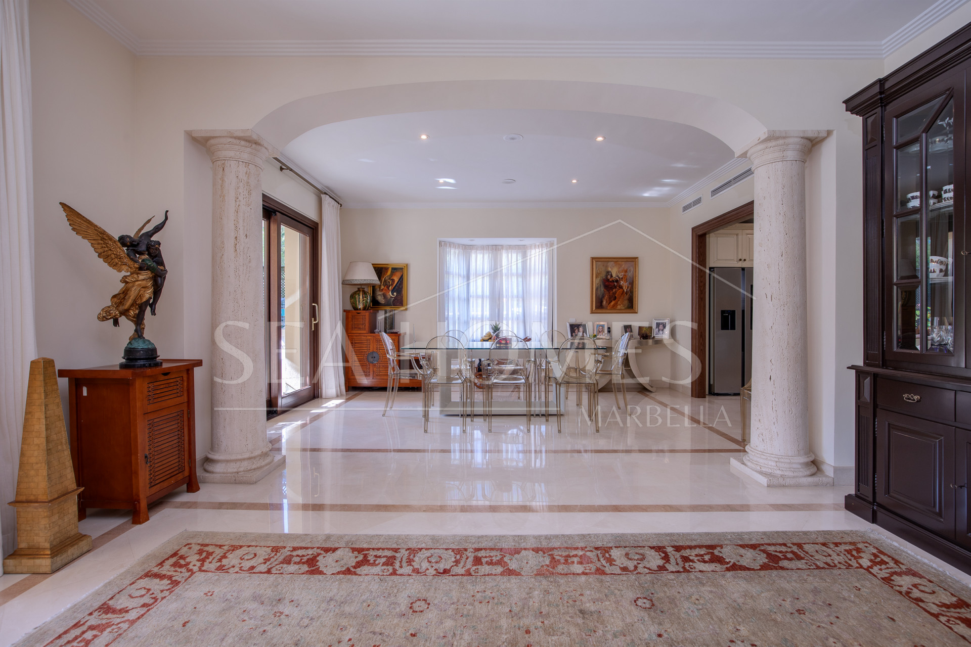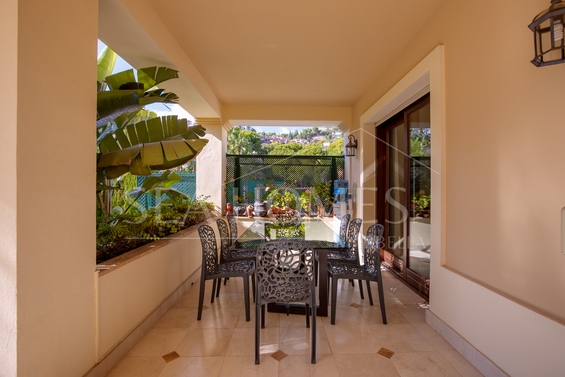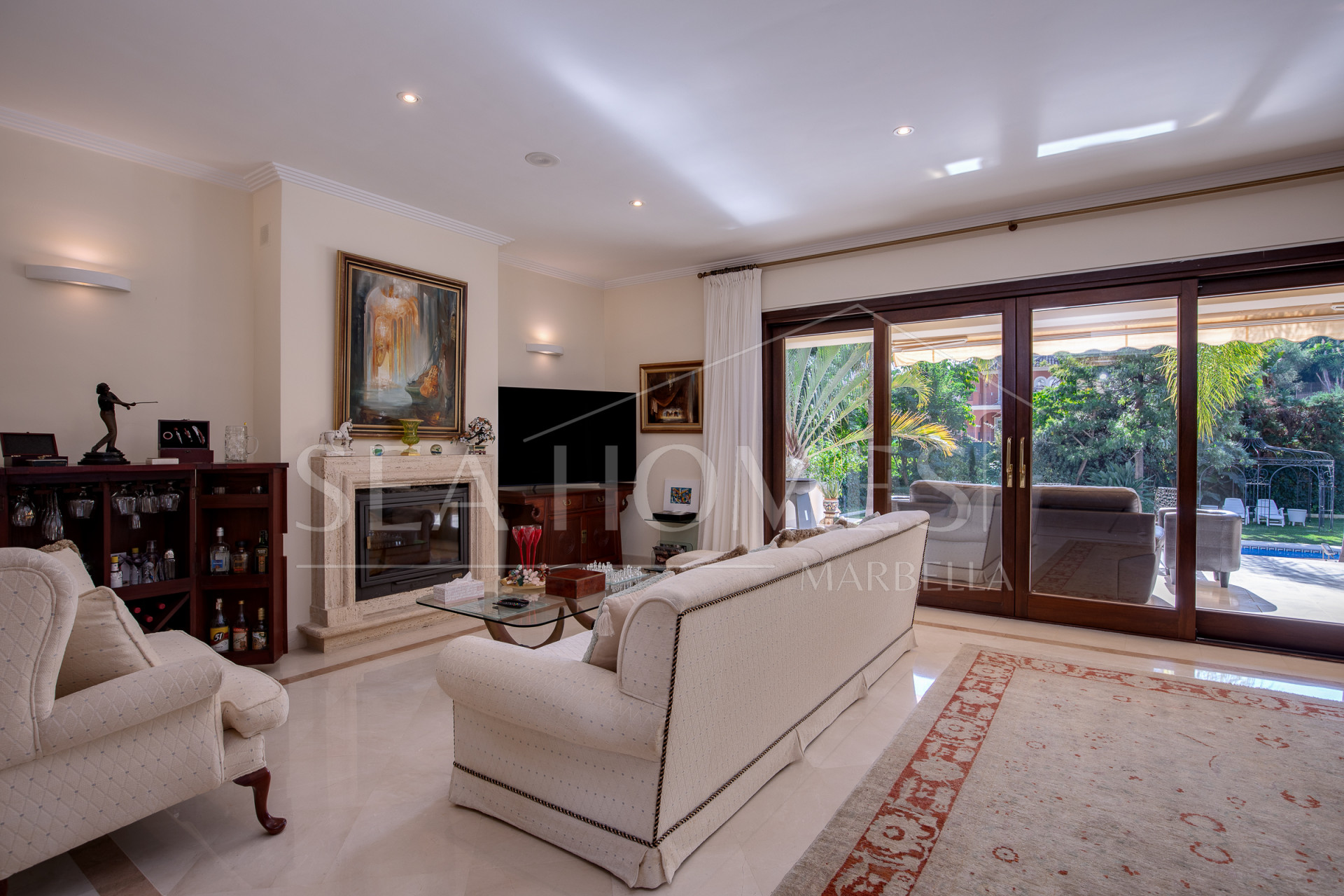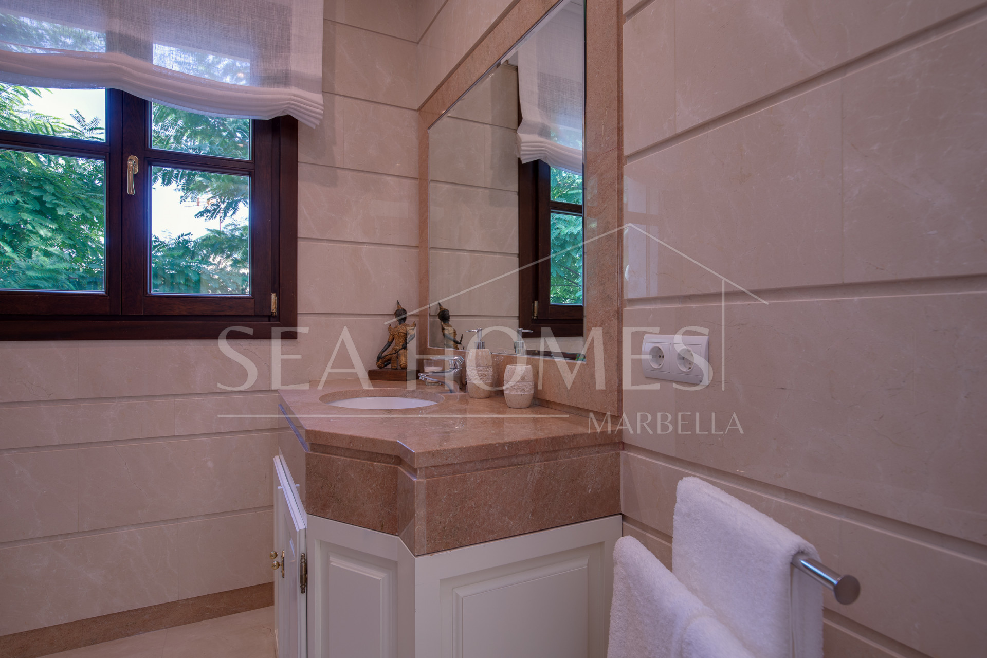 This marvelous villa is located in Los Arqueros urbanization, with 24/7 security. It’s situated between La Quinta, El Madronal, La Zagaleta, and San Pedro Alcántara. In close proximity to the best golf courses in Marbella and Benahavis, the area offers excellent services, restaurants, various international schools, and easy access to the highway.