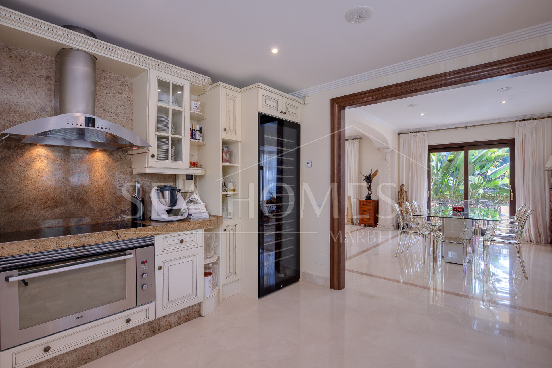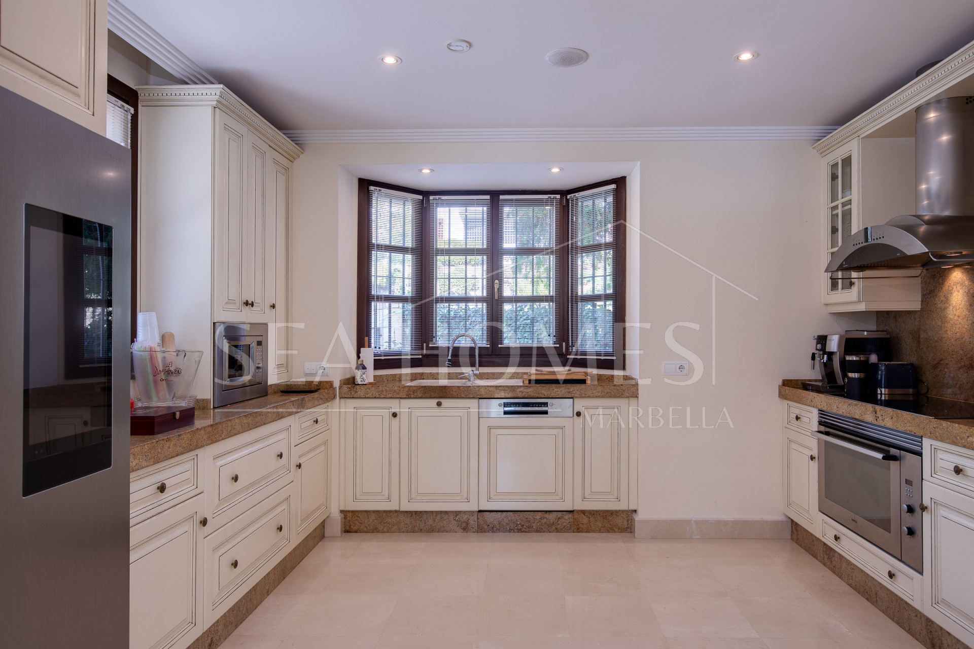 This wonderful villa features two basement floors, one of which is open-plan, while the other is designed to accommodate a gym and a hammam with a 10,000-liter water reserve.